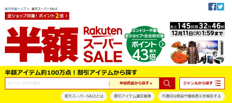 期間は楽天スーパーセールとは少し期間が違って「12月16日(日)23:59まで」です。