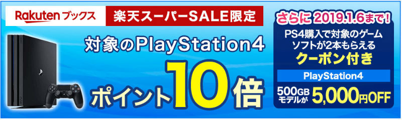 ⇒【スーパーSALE限定】対象のPS4本体がポイント10倍!