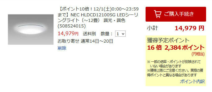 ↑我が家でも狙っていた新居用のシーリングライトがポイント10倍になっていました!(‘ω’)ノヒヤッホイ