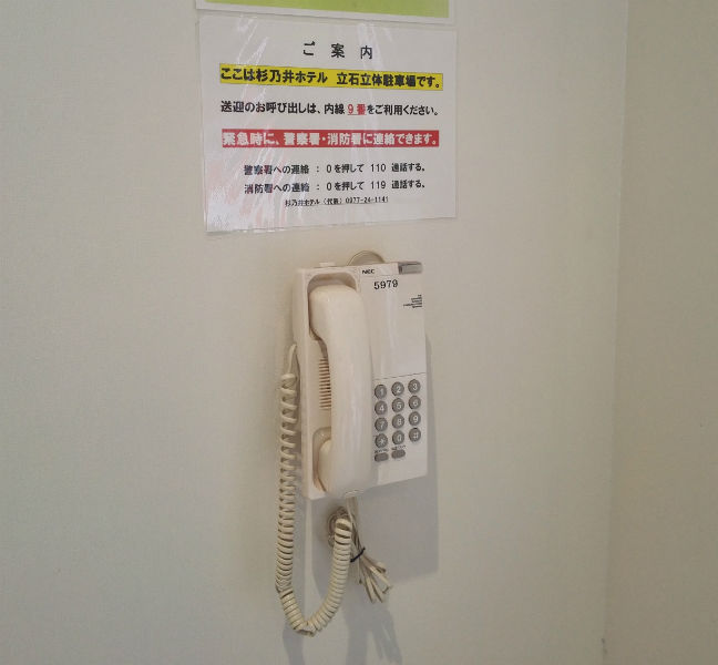 車を立体駐車場に停めて、1階出口に向かうと会社の電話っぽい送迎連絡用の電話がありました。